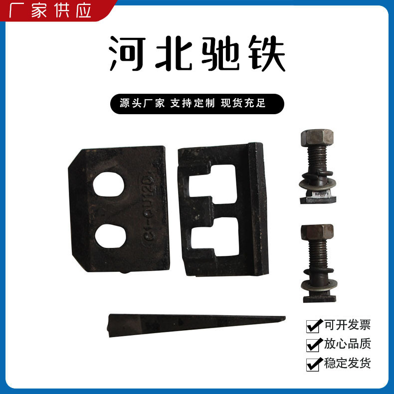主要產(chǎn)品:鐵路配件、行車配件、工礦配件、魚(yú)尾板、道釘、壓軌器、軌道壓板、軌距拉桿、護(hù)軌扣板、T型螺栓、魚(yú)尾螺栓、彈條、軌距擋板